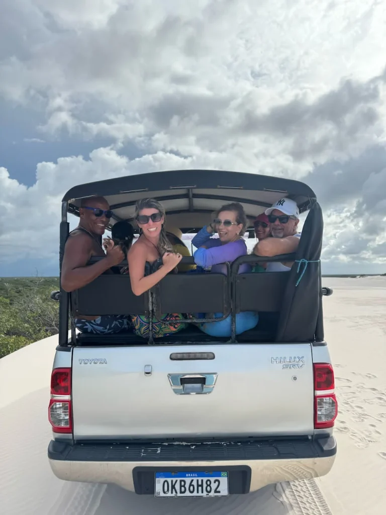 “Fechei todo o transfer da rota das emoções com a empresa. Foram 14 dias, 08 a 21/06 , desde o início das cotações até o último dia de chegada foram extremamente atenciosos no atendimento. Estávamos em um grupo de 7 pessoas, houve atenção na escolha dos carros e todos os motoristas que realizaram os percursos eram profissionais e dirigiam com segurança. Os atendimentos no percurso foram pontuais e eficientes, garantindo a nossa tranquilidade. Iniciamos o percurso em São Luís até Santo Amaro, passamos 2 dias em Barra Grande, e terminamos em Jericoacoara embarcando no aeroporto de Jijoca. Falando em preço, fiz a comparação entre operadoras e o melhor preço foi com a Jericar, e ainda facilitam o pgto de acordo com a negociação. Agradeço a Jericar por toda a atenção e uma prestação de serviços excelente que ajudou a tornar nossa viagem inesquecível.” — Grupo de viajantes que fizeram Rota das Emoções