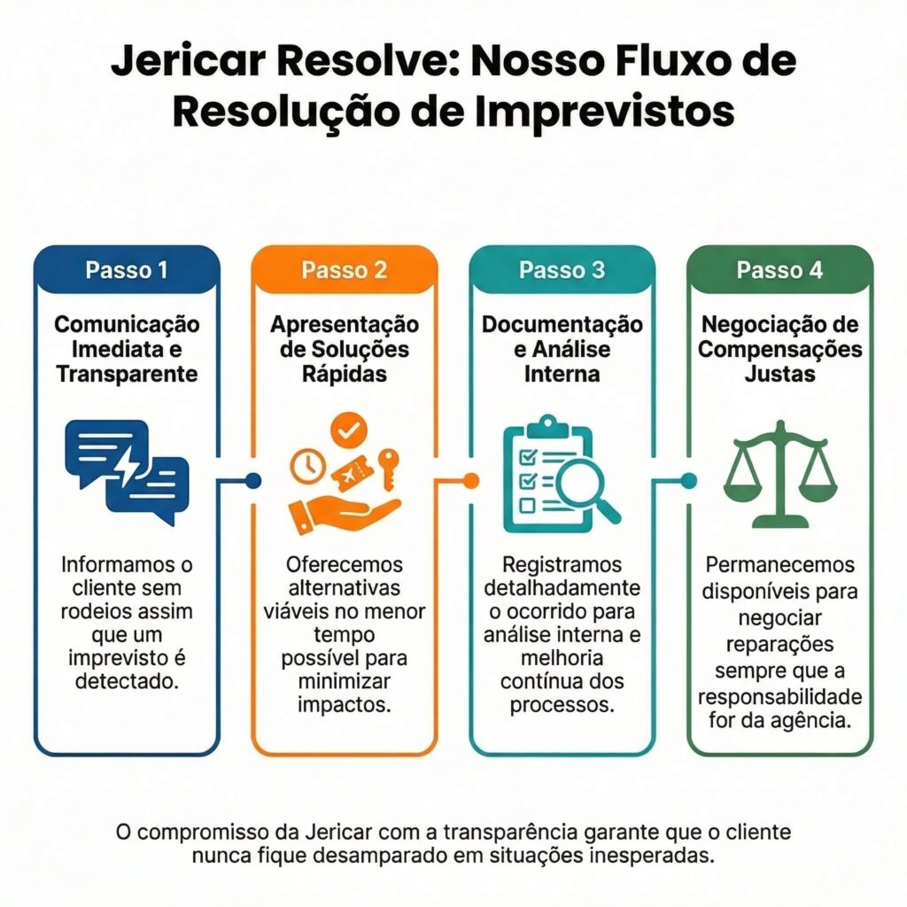 Se você teve alguma experiência com a Jericar Viagens que não atendeu às suas expectativas, queremos saber. Nossos canais de atendimento estão abertos para ouvir, esclarecer e, quando necessário, corrigir.