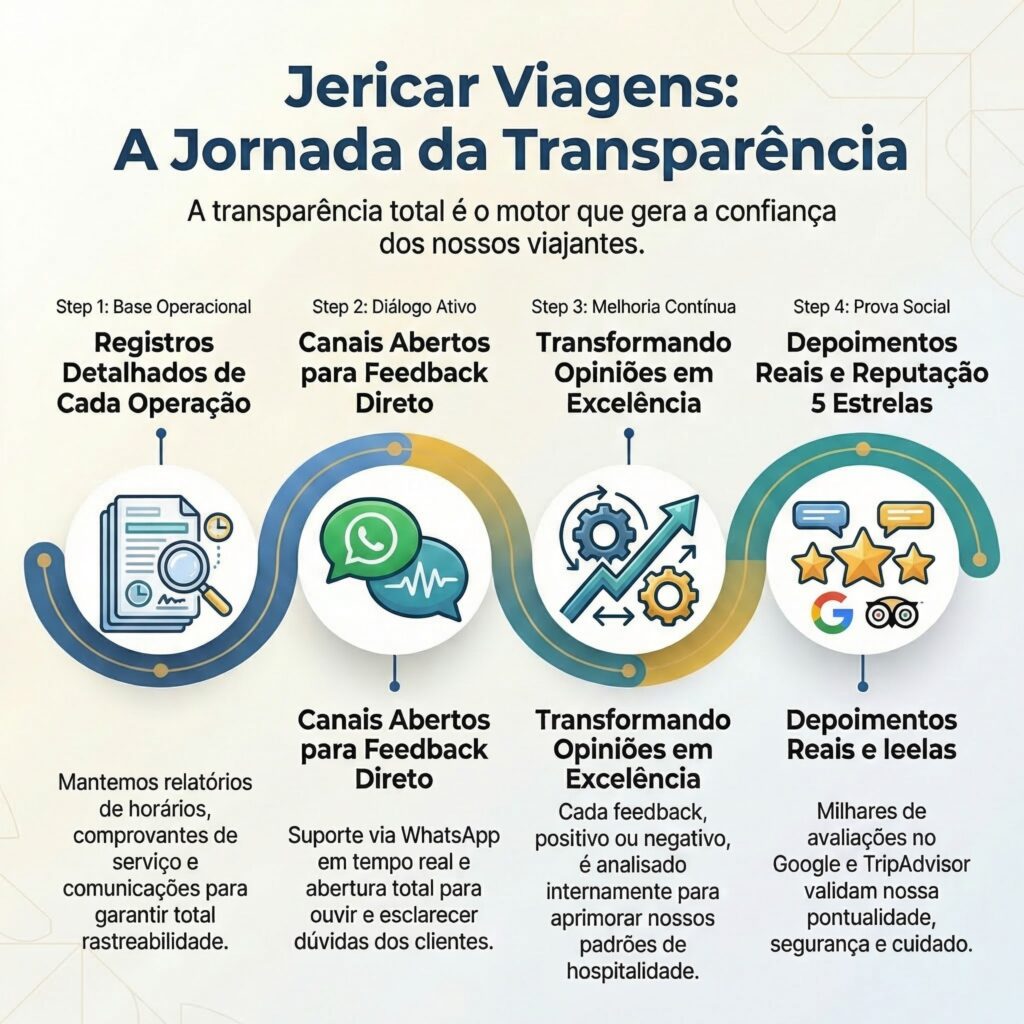 Neste artigo, queremos ser completamente transparentes sobre como operamos, quais são nossos padrões de serviço e por que milhares de viajantes escolhem a Jericar Viagens como parceira de confiança para explorar os destinos mais incríveis do Nordeste brasileiro.